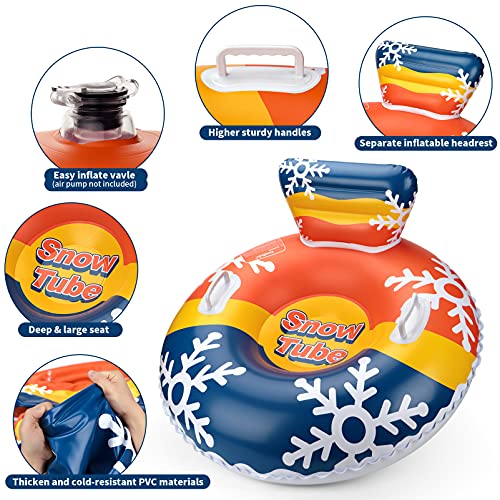 Click for More Images QUICK INFLATION & DEFLATION:Large 3 in 1 inflatable valve inflates in seconds so you're ready for the snow faster.WINTER SNOW TUBE: Perfect for sledding down snowy hills in style,Best Christmas Birthday winter gift for kids...