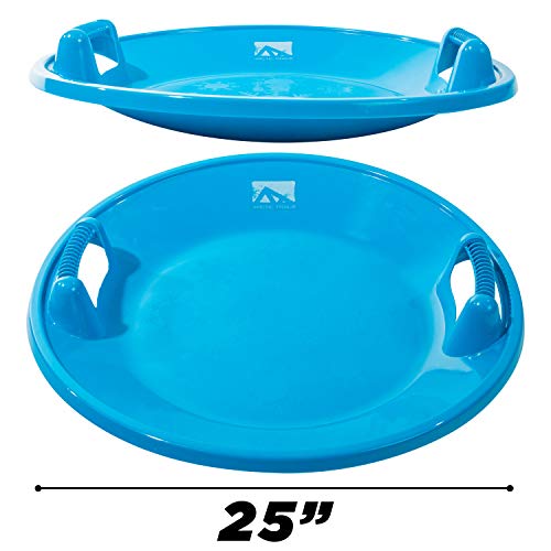Click for More Images Built to Last Long: You do not have to worry about sled cracks, Our saucer sled is made of Heavy-Duty Plastic Robust Construction prevents breakage and withstands all season providing a high-speed rideComfortable Hand Grip:...
