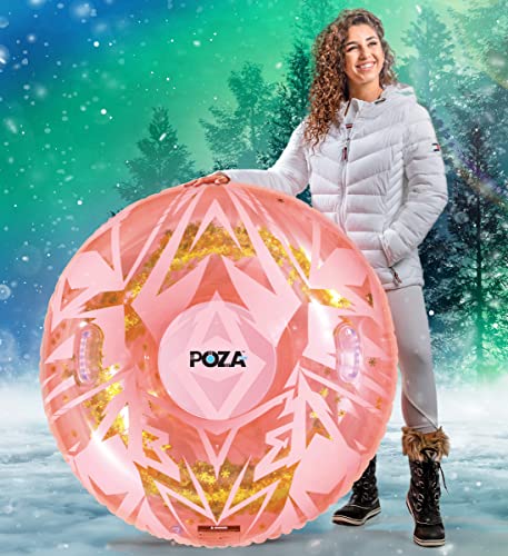 Click for More Images THE SNOW TUBE SLED COMES WITH UNIQUE DESIGN YOU WILL LOVE – Sledding has never been this fun with POZA's Rose Gold Snow Tube Sled. With its attractive pink color and gold snowflakes inside, the inflatable tube for snow...
