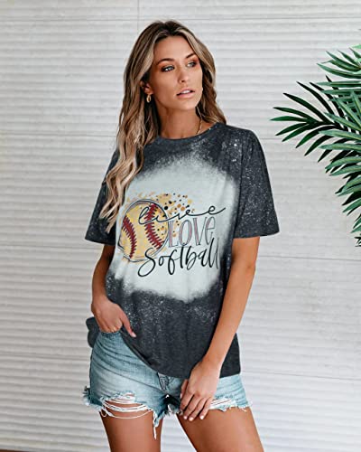 Click for More Images Material:Cotton Blend, soft comfy and breathable to wear.Style: Live Love Softball Graphic Printed T Shirt ,Casual Short Sleeve Sports Tees, Loose Summer Moms Tball Tops.Match: Cute Softball Shirt, Good Choice To Match With...