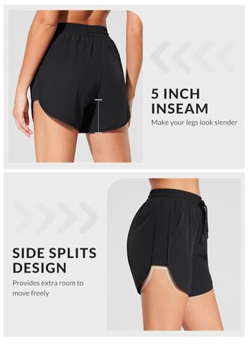 Click for More Images High waisted & tummy control: women's 4" swim shorts with a wide waistband keep your tummy in check! Inner drawcord provides an adjustable fit.3 Pockets: 2 side mesh-lined pockets dry faster when you get out of water without...