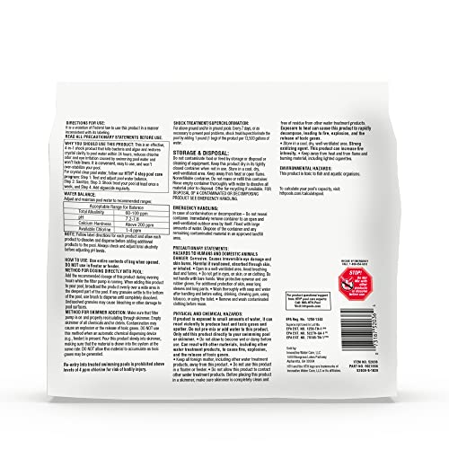 Click for More Images BENEFITS: Stay all clear for cannonballs; This fast-dissolving, convenient 4-in-1 formula kills bacteria and algae, reduces chlorine odor and irritation, and quickly restores crystal clarityFEATURES: Multi-functional shock...