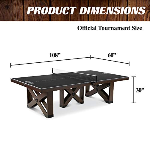 Click for More Images Official tournament size 9 x 5 ft. table with 2-piece construction and requires no tool assembly for fast setup18mm playfield for great ball bounce and longevityAccessories include one set of premium clip-on posts with...
