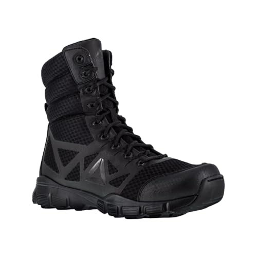 Click for More Images 8-INCH ZIP-UP BLACK TACTICAL BOOTS designed for wear by police, emergency medical services and EMT, private security, corrections, and militia personnelCONVENIENT CURVED SIDE-ZIP provides a secure fit and allows for quick on...