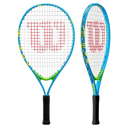 Click for More Images Wilson US Open 25 Junior Recreational Tennis Racket - BlueRecommended for ages 9-10Fun design on racket hoop inspired by US Open; AirLite Alloy construction creates lightweight frame with power and durabilityPairs well with...