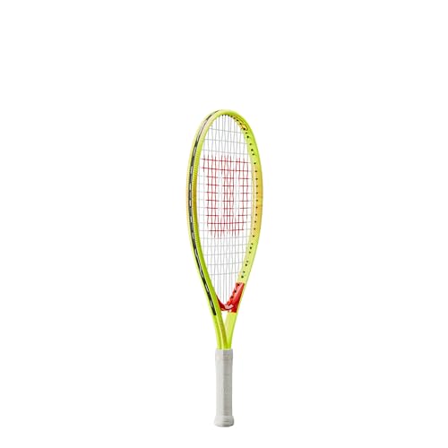 Click for More Images Wilson Federer 21 Junior Recreational Tennis Racket - Yellow/RedVivid colors on frame make a statementHead size provides generous sweet spot for added power and forgivenessAirLite Alloy construction creates lightweight frame...