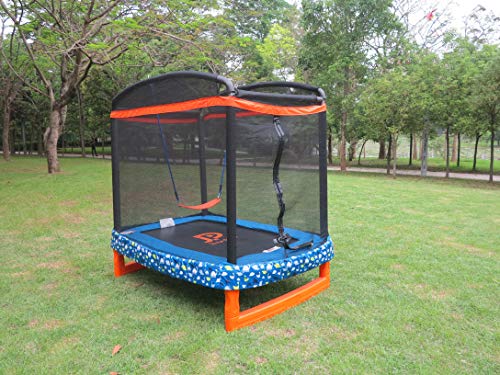 Click for More Images 72" x 50" Rectangular Indoor/Outdoor Kids Trampoline and Safety Net with Swing ComboSPRING SAFETY PAD: Covers the Springs for added protection. Jumping Mat made of Heavy Duty Grade A Black Trampoline fabric42 - Zinc Coated...