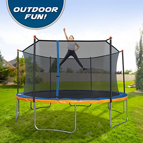 Click for More Images ?ASSEMBLE EASILY - All accessories included, packed in 3 bags. Trampoline frame and Jumping mat, Safety enclosure net, Trampoline Safety Pad, Trampoline Rain Cover, U-shaped Wind Stakes, Instruction Manual.?PREMIUM BOUNCING...