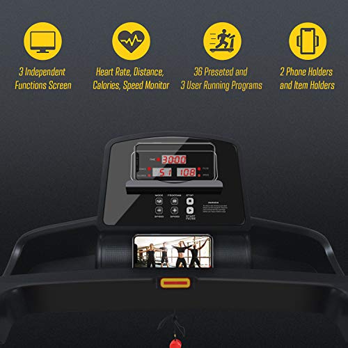 Click for More Images ??Multifunction Display Screen with Desk?Compared with other treadmills, we have a multi-functional LED display with a desktop for PC and water cup meantime to track your performance in terms of time, speed, distance,...