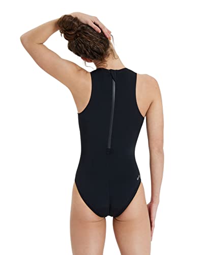Click for More Images Zipper ClosureImported100% PolyesterHand Wash OnlyTeam Swimsuit Waterpolo SolidFeaturing a high neckline for optimal coverage,the arena Waterpolo One Piece utilizes a back zip for easy on and off and a chlorine resistance...