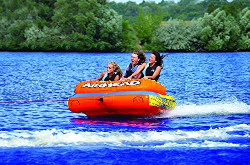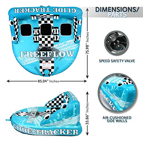 Click for More Images 3 Rider Capacity: Measuring a spacious 75''x 67'' x 36'' when inflated, this large towable tube comfortably fits 3 riders up to 770lbs at a time for exciting water ridesQuick Hook Ups: 1 Tow connector on the front tow point...