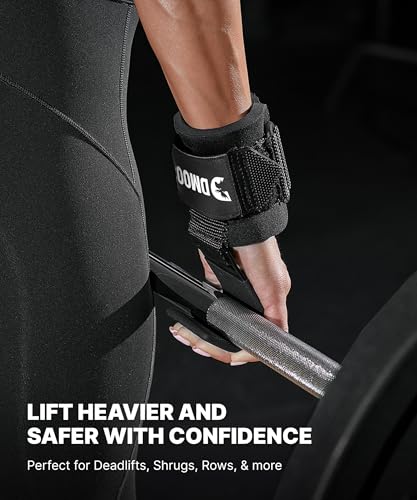 Click for More Images NO MORE GRIP FATIGUE DURING LIFTS: DMoose Wrist Hooks for weightlifting feature a non-slip grip that locks your hands to the bar, preventing grip fatigue during heavy lifts. Gym Grips focus on pushing more weight without...