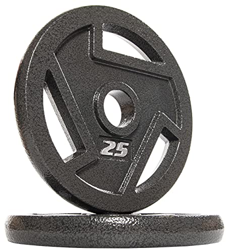 Click for More Images Made of solid cast iron with a 2-inch center hole fits any Olympic bar with diameter 2” or less; Can be used with 2” dumbbell bars tooAll plates features a durable, black baked enamel finish to prevent the plates from...