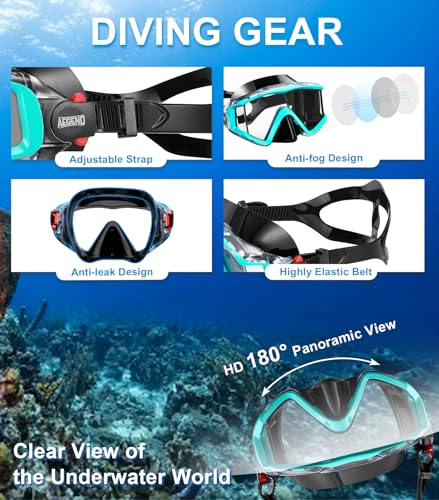 Aegend 2 Pack Snorkeling Gear for Adults, Dry Snorkel Set Panoramic View Enhanced Anti-Leak and Anti-Fog Technology, Adjustable Strap for Snorkeling Scuba Diving Swimming with Mesh Bag
