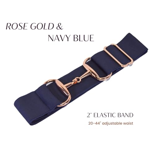 CELAEQ 2 inch Luxury Elastic Equestrian Belt, Horse Riding Belt with Rose Gold Buckle, Stretchable and comfortable waist (Navy)