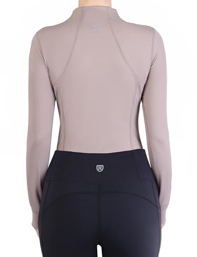 Harrison Howard Women’s Horse Riding Shirt – Long Sleeve Equestrian Shirts with 1/4 Zip, Stretchy Thermal & Breathable Fabric, Comfortable Top for Training, Show & Daily Wear Camel Medium