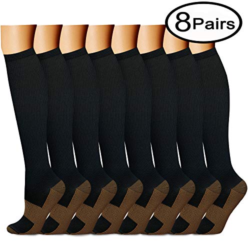 QUXIANG Copper Compression Socks (8 Pairs) for Women & Men- Best for Running, Athletic, Pregnancy and Travel – 15-20mmHg