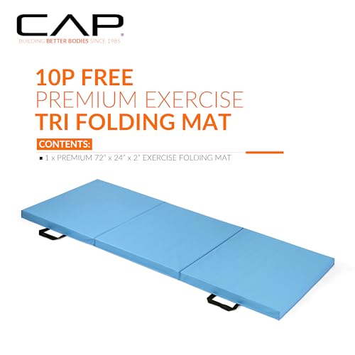 CAP Barbell Folding Exercise Mat – Durable, Anti-Tear, Thick Padding for Fitness, Aerobics, Gymnastics & Home Workouts. 72″L x 24″W x 2″Thick. BLUE