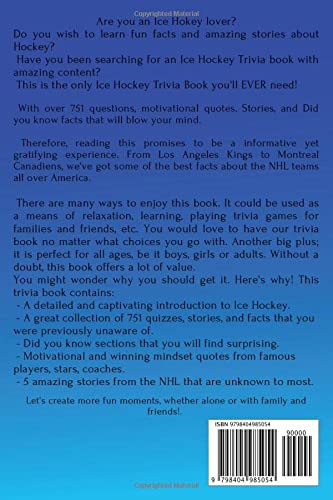 Home » Ice Hockey » The Ultimate Ice Hockey Super Trivia Book: An Amazing Collection with Over 751 Trivia Questions, Stories, Fun Facts and Motivational Quotes for NHL Super Fans. Suits for Adults, Teens & Kids