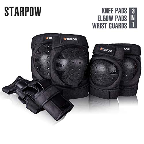 Home » Inline & Roller Skating » Knee Pads For Kids/Adult Elbows Pads Wrist Guards 3 In 1 Protective Gear Set For Skateboarding, Roller Skating, Rollerblading, Snowboarding, Cycling(S/M/L) By STARPOW (Black, Adults)