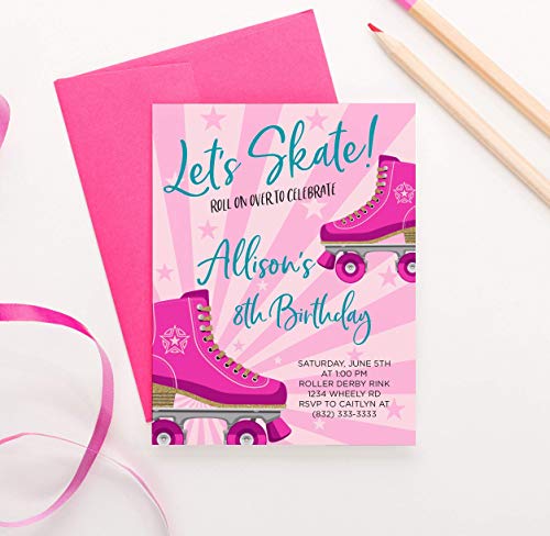 Home » Inline & Roller Skating » Personalized Roller Skating Birthday Invitations for Girls, Your choice of Quantity, Age, Info and Envelope Color