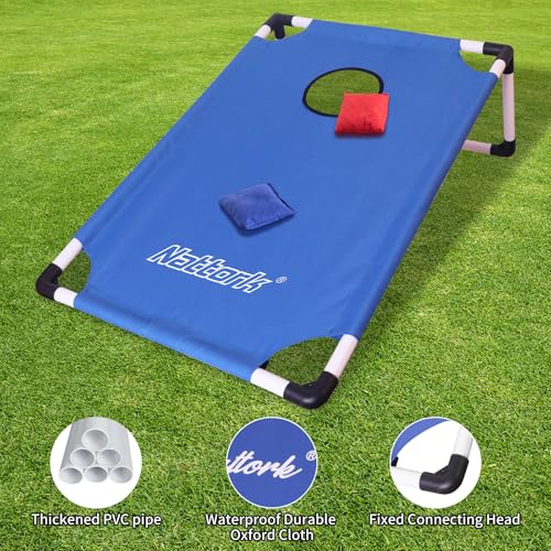 Portable Cornhole Set PVC Framed Corn Holes Outdoor Game Set with 2 Cornhole Boards, 8 Cornhole Bean Bags and Carrying Case, Camping Games Indoor Outdoor for Adults, Travel Camping Accessory