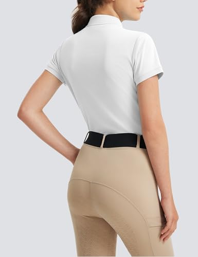 Click for More Images Moisture Wicking: Equestrian shirts for women made of breathable, lightweight and 4-way stretchy fabric, coupled with great moisture wicking performance, this horse riding shirt can keep you feel dry and comfortable for a...