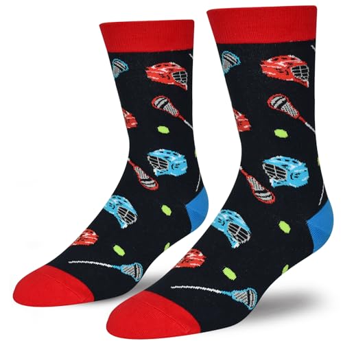 Click for More Images ??Funny Lacrosse Socks?It's the perfect gift for a lacrosse player. Cool black socks on top of which the red team and the blue team are playing a fierce lacrosse game. A great gift for the men's or women's hockey team.??One...