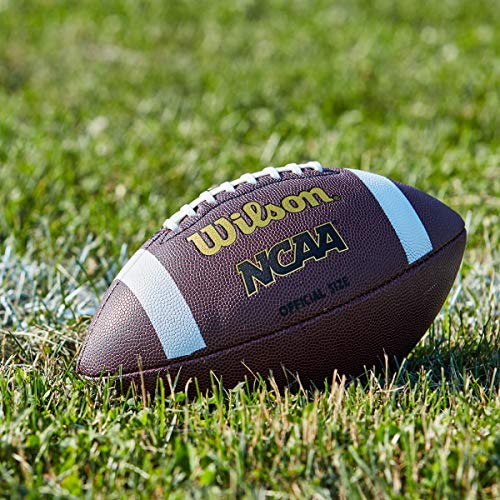 Click for More Images Wilson NCAA Composite Football - Official Size, BrownOFFICIAL SIZE: Official regulation size for High School and College Football, ideal for ages 14 and upSEWN CONSTRUCTION: The strong composite cover combined with enhanced...
