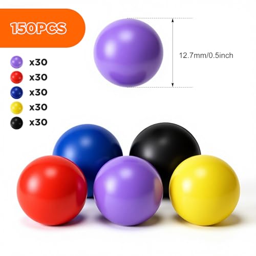 Silipull 68 Cal / 50 Cal Solid Nylon Balls, Reusable Plastic Ammo Projectiles Hard Paintball for Defense Target Shooting Practice, Self Defense(0.5 Inch,Vivid,150 Pcs)
