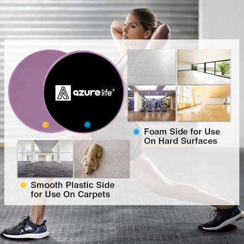 A AZURELIFE Exercise Core Sliders, Dual Sided Exercise Gliding Discs Use on Carpet or Hardwood Floors, Light and Portable, Perfect for Abdominal&Core Workouts