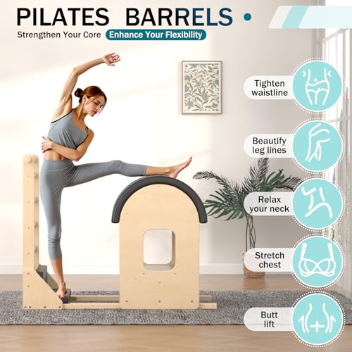 • [Full-Body Workout for Sculpting & Flexibility]: The Pilates Barrel is ideal for those aged 18 to 80, especially those with sedentary lifestyles. It enhances muscle strength, flexibility, and spine mobility, offering a controlled workout that focuses on stretching, breathing, and sculpting. Perfect for toning the waist, abdomen, and buttocks, it promotes overall body strength and flexibility, supporting up to 220 lbs.