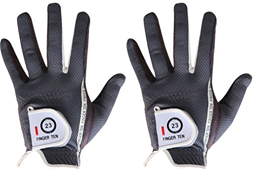 FINGER TEN Men’s Golf Glove Rain Grip Pair Both Hand or 2 Pack Left Right Hand, Hot Wet Weather No Sweat, Black Gray Green, Fit Size Small Medium Large XL