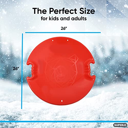 Superio (2 Pack) Snow Saucer Sled Round Avalanche Sand Sledding Disc for Kids and Adults – Plastic, Red