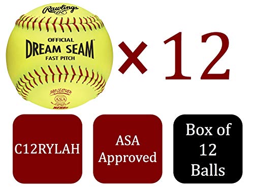 Rawlings Sporting Goods C12RYLAH Official ASA Dream Seam Fast Pitch Softballs (One Dozen), Yellow, Size 12