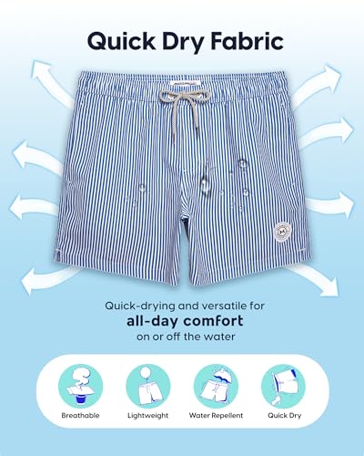 maamgic Mens Swim Trunks 5 Inch with Mesh Lining, Quick Dry Mens Bathing Suit, Swim Shorts for Swimming and Beach, Medium Blue Stripe