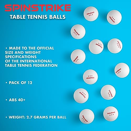 Home » Table Tennis » SPINSTRIKE White Ping Pong Balls – Table Tennis Balls 12 Count – 3 Star 40+ ABS Official Size and Weight – Pro Table Tennis Tournament Quality – Family Fun for Pingpong Night