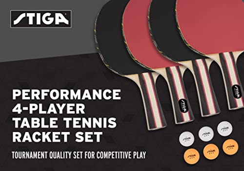 STIGA Performance 4 Player Ping Pong Paddle Set of 4 – Table Tennis Rackets, 6 – 3 Star Orange and White Balls