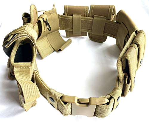 First to act tactical Law Enforcement Modular Equipment System Security Guard Military Tactical Duty Utility Versatile Battle Work Hunting Belt (10 in 1, adjustable 35-45 inches, Khaki)