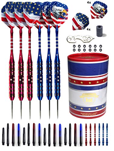 Professional Darts Set - Customizable Configuration 6 Steel Tip Darts (2 Styles) | 18 Shafts (3 Styles) |8 Standard Flights (2 styles)| 12 O-Rings | Darts Tool | Darts Sharpener and Case FOUNDATION OF SUCCESS IN ACCURACY AND TARGETING: With every...