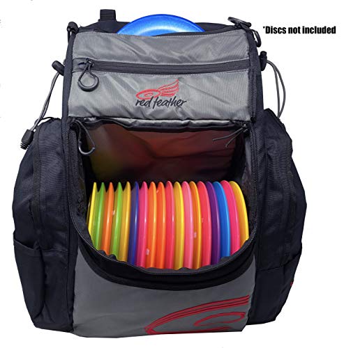 Red Feather Disc Golf Backpack - 20+ Disc Capacity with Matching Rainfly - Extra Storage and 2 Water Bottle Holders (32 Ounce) 20 DISC CAPACITY - Includes a main disc compartment. The top pocket can be adjusted from the inside, can hold personal...