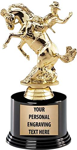 Everyone Wins With This Crown Exclusive Trophy! This Trophy Features A Gold Figurine Atop A Smooth Round Base Plus Your Very Own Engraving Text Making This Custom Award One Of A Kind. RODEO TROPHY: This Customizable Rodeo Award Trophy Is 7.25"H...