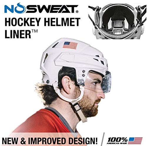 No Sweat Hockey Helmet Liner No Sweat is a disposable Liner / Sweat Absorber that sticks on the inside of ANY helmet, hat, cap or LID and soaks up sweat so you do NOT have sweat dripping down onto your face and into your eyes, glasses, mask or...