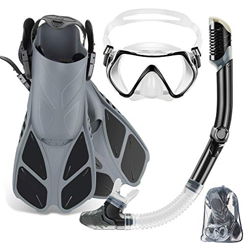 ZEEPORTE Mask Fin Snorkel Set with Snorkeling Gear Adult The ZEEPORTE snorkeling set is ideal for any recreational snorkeler. Equipped with the snorkeling fins with lightweight and compact short blade, better fit soft dive mask and adjustable dry...