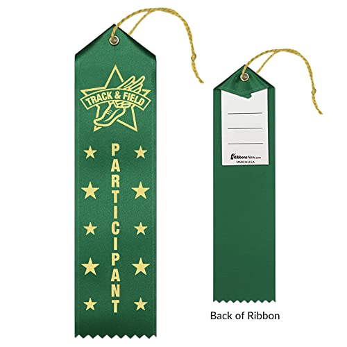 25 PARTICIPANT RIBBONS – Recognize your athletes with our Track Participant Ribbons in dark green with metallic gold printing.