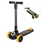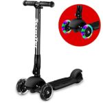 Greentest Scooter Foldable Adjustable Height Easy Turning 3 Wheel Scooter Kids Boys Girls Flashing PU Wheels (Black) (Black)