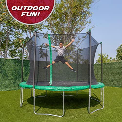 TruJump Round Outdoor Trampoline and 6 Pole Safety Enclosure Net Combo, 12FT, Green
