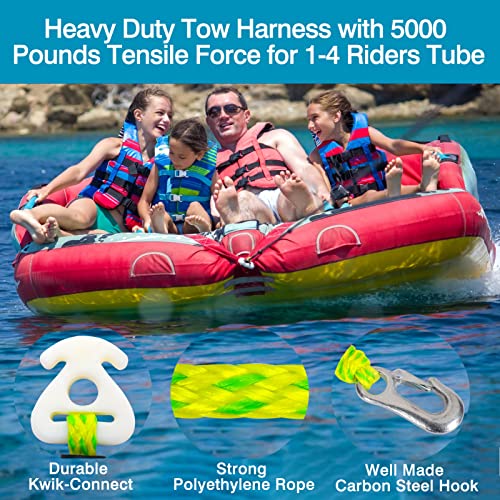 • Tow 4 Riders Tube: Heavy duty Boat Tow Harness offers 5000 pounds tensile force, and exceeds WSIA and AWSA requirements, towing up to 4 riders tube.