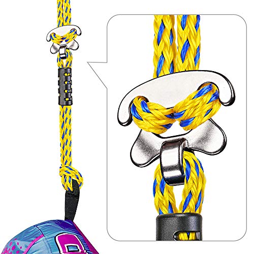 • EASY CONNECTION: Great way make quick, easy and secure connections of a tow line, takes within 10 seconds to attach the connector to the towable tow strap instead of having to thread a long tow rope through the strap. What’s more, it keeps the rope held very tight with no concern of coming loose.