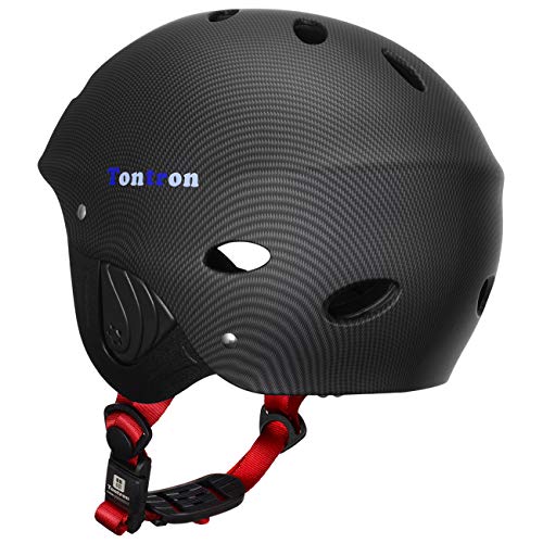 Home » Waterskiing & Tow Sports » Tontron Adult Kayaking Wakeboarding Waterskiing Whitewater Helmet (Matte Black Fiber Pattern with Magnetic Buckle, Large)